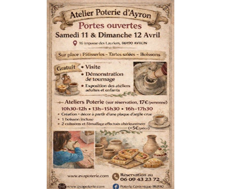 Ateliers de Poterie et Céramique dans la Vienne, à Ayron 86190.